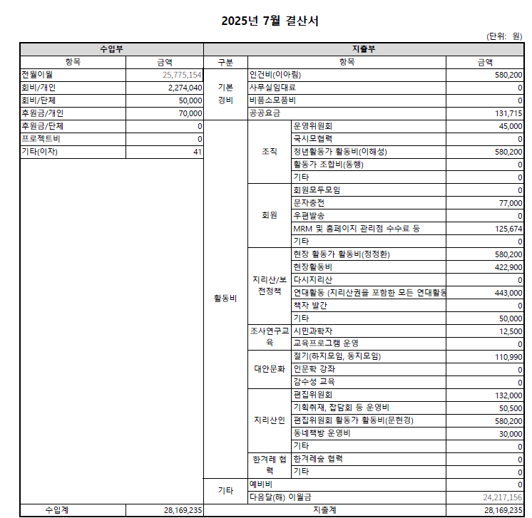 에 의해서 지리산사람들 | 2025-08-06 | 결산보고 | 코멘트 0개
